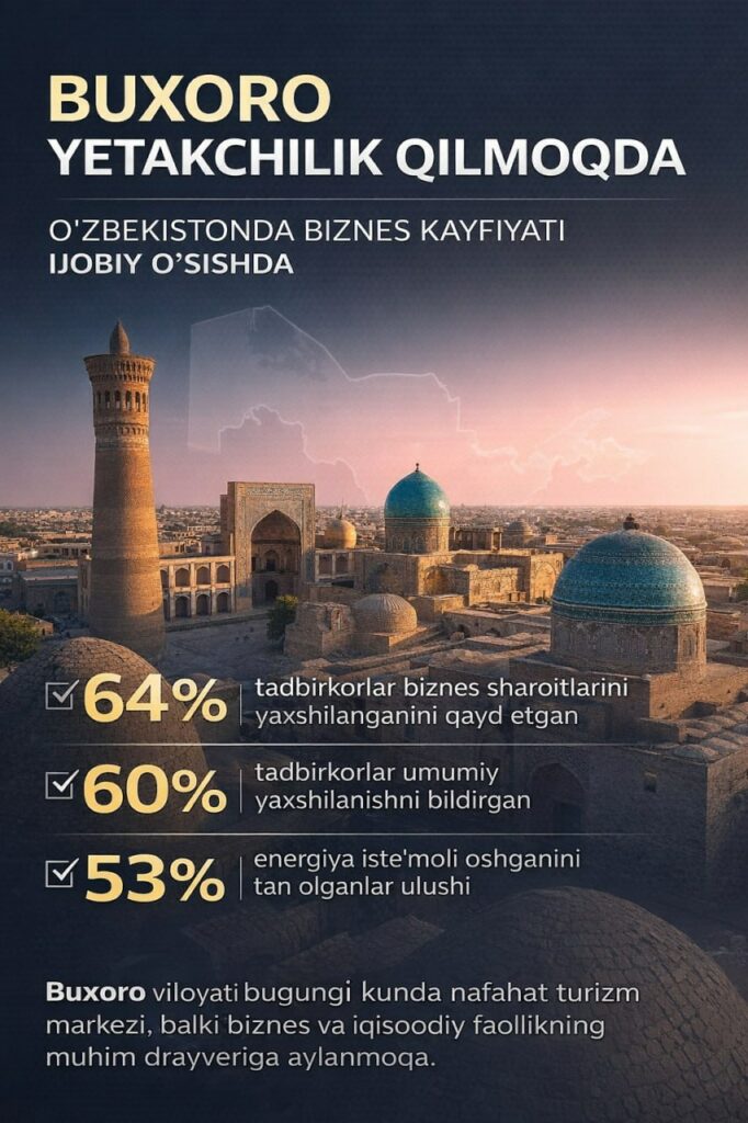 Buxoro yetakchilik qilmoqda: O‘zbekistonda biznes kayfiyati ijobiy o‘sishda